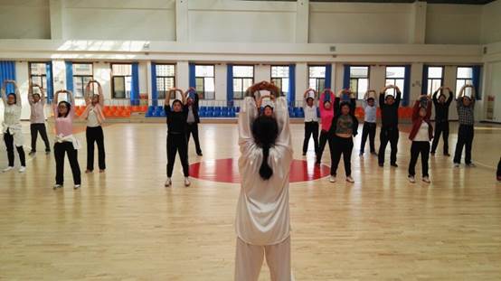 为深入贯彻落实《全民健身计划纲要》以及国家卫生城市标准,依照“广泛开展全民健身活动,机关、企事业单位落实工作场所工间操制度”的要求,增强广大干部职工的身体素质,根据市妇联、市直机关工委、市体育局等单位关于在全市推行工间操制度的通知精神,经研究,自5月4日起,我校工会组织教职工集中学习“八段锦”,开展健身活动。本着“统一时间、相对集中、因地制宜、人人参与”的原则,对学习时间、地点做出相应规定,并提出要求,做到工作建身两不误。通过开展干部职工喜闻乐见的健身活动,旨在培养教职工的集体主义精神、增强组织纪律性、增强凝聚力、发展校园精神文明等方面发挥重要作用,对推动我市全民健康生活方式、增强广大干部职工身体素质、精神文明建设,建设“四个铜川”具有重要意义。