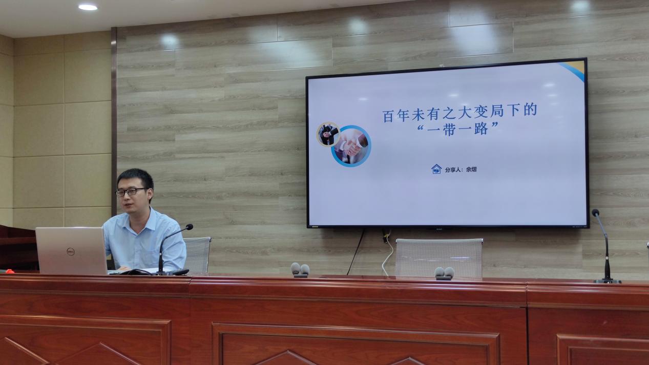 7月21日下午,市委党校青年教师学习习近平新时代中国特色社会主义思想小组“每周一讲”第二十三期开讲。我校办公室青年干部余熠以《百年未有之大变局下的“一带一路”》为题进行分享交流,刘锋副教授主持。