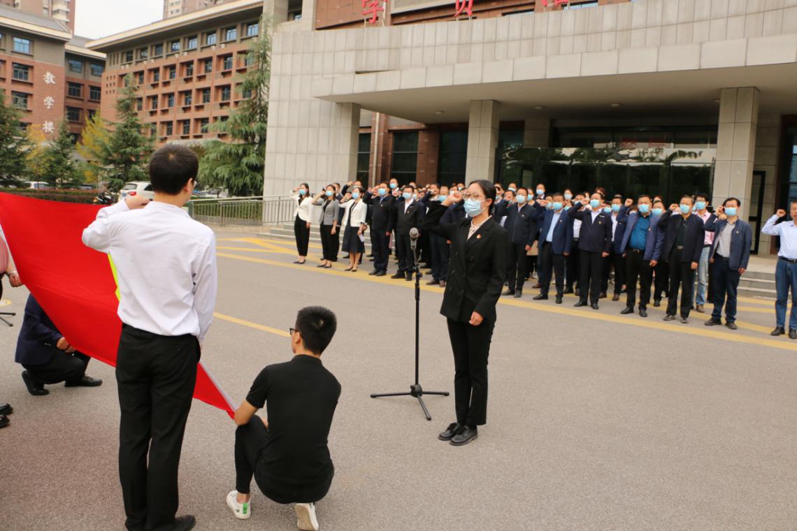 活动在升旗仪式中拉开序幕,鲜艳的五星红旗随风冉冉升起,全体人员跟着激昂的国歌旋律,怀着对祖国无比崇高的敬意,向国旗行注目礼。随后,机关党委副书记李欣带领大家面向党旗,重温入党誓词。