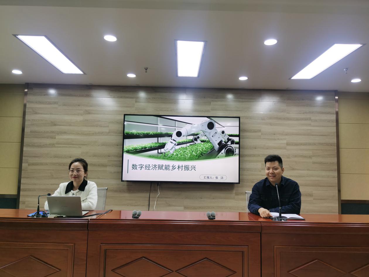 4月27日上午,市委党校青年教师学习习近平新时代中国特色社会主义思想小组“每周一讲”第三十九期开讲。市委党校经济学教研室讲师张洁讲授了《数字经济赋能乡村振兴》,教学科研处处长原晓康和各位青年教师参加,崔浩主持。