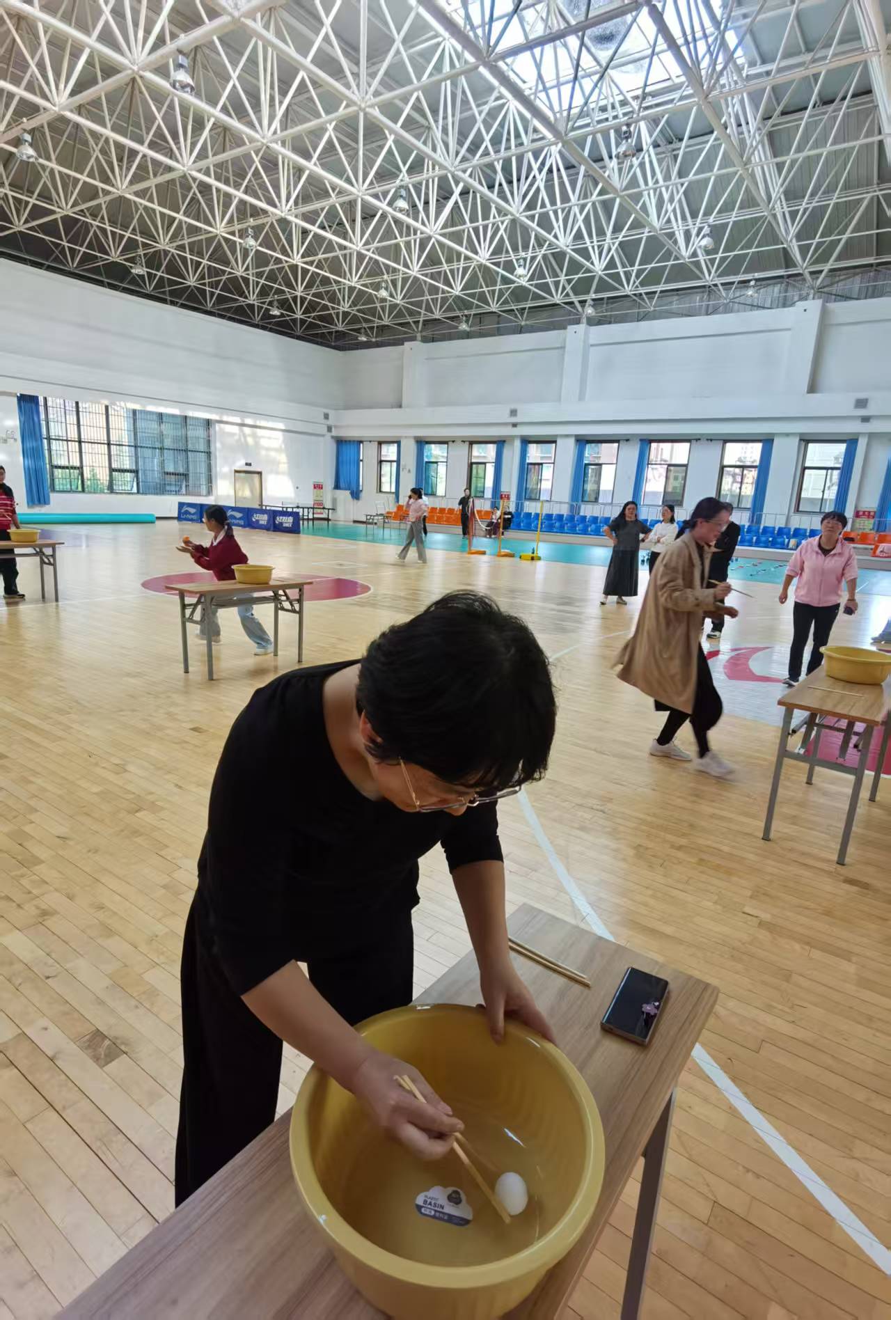 本次运动会聚焦“趣味+协作+挑战”核心,精心设置了多个特色项目,其中“反向转向”与“原地踏步挑战”成为现场焦点。“反向转向”项目中,选手需根据指令完成反向转向,当裁判喊“向左转”时,选手需迅速向右转,稍不留神就会出现方向错乱的逗趣场景,参与教职工的加油声与笑声此起彼伏 。“原地踏步挑战”则考验着选手的平衡感与专注力,参与者蒙上双眼后需在规定区域内原地踏步60秒,既不能踩线出圈,又要保持动作节奏,不少选手不知不觉“跑偏”位置,引得全场会心大笑,充分展现了项目“轻竞技、重欢乐”的特色。